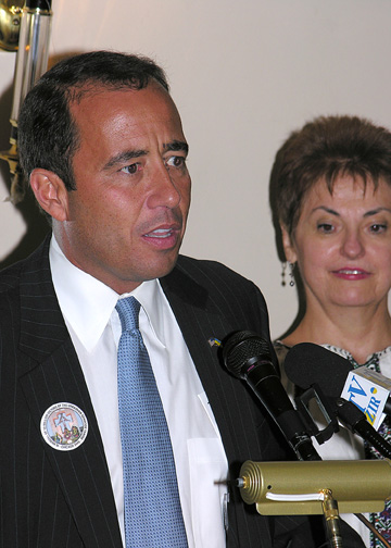 Candidate for Congress, Jim Ascot from the 7th District, greets the luncheon attendants