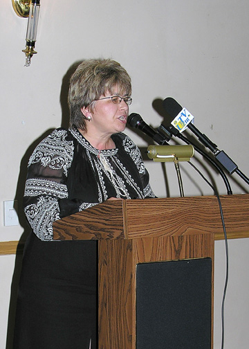 Christine Herbert accepts the Genocide Education Award on behalf of Governor Rod Blagojevich