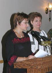 UGFF-USA Board Member Katya Mischenko-Mycyk and Vice President Lida Tkaczuk present the Genocide Education Awards