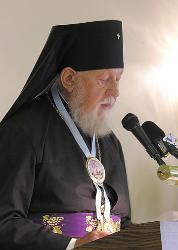 Ukrainian Genocide survivor Archbishop Alexander Bykowetz of Detroit presented a keynote address in the Ukrainian language