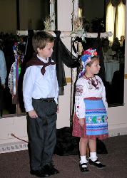 Children participate in reciting a poem about the Ukrainian Genocide